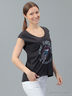 Замечательная футболка, выполненная из качественного материала. Изделие с округлым вырезом горловины и округлым вырезом горловины. Яркий принт на груди, ассиметричный низ. Займет достойное место в Вашем гардеробе.