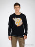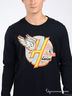 Трикотажная футболка с длинными рукавами. Спереди кокетка. Круглая горловина, окантованная трикотажной резинкой. На полочке принт.