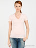 Детали: V-образный вырез горловины, короткие рукава, трикотажная оборка, стильная расцветка в полоску, оригинальная сборка по врезу горловины