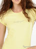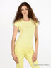 Приталенная трикотажная футболка. Круглая горловина. Короткие. Рукава. Полочка украшена стразами.
