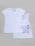 Футболка белая с коротким рукавом и майка. Футболка однотонная с короткими рукавами, округлым вырезом горловины. Топ из полупрозрачной ткани декорирован оборками и надписью. Отличное решение для летнего гардероба девочки.