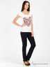 Детали: круглый вырез, короткие рукава, полочка украшена оригинальным принтом
