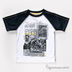 Футболка с коротким рукавом регланом, декоративная отстрочка и принт на груди.
