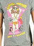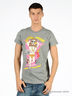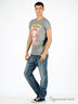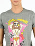 Трикотажная футболка цвета серый меланж из приятного на ощупь материала. Выполнена из натурального хлопка. Круглая горловина. Короткие рукава. На полочке яркий принт.