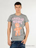 Трикотажная футболка цвета серый меланж из приятного на ощупь материала. Выполнена из натурального хлопка. Круглая горловина. Короткие рукава. На полочке оригинальный принт.
