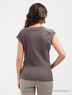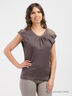 Футболка с короткими рукавами и округлым вырезом горловины. Вырез украшен декоративными складками. Отличный вариант на каждый день.