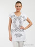 Нежная удлиненная футболка в таком симпатичном дизайне - прекрасный вариант на каждый день. Изделие с короткими рукавами и округлым вырезом горловины. На груди футболка декорирована рисунком.