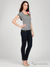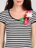 Детали: круглый вырез; короткий рукав; оригинальный принт-полоска; на полочке оригинальные нашивки в виде цветов с бусинами