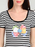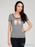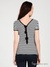 Детали: круглый вырез; короткий рукав; на спинке оригинальный вырез с бантиками; оригинальный принт; на полочке аппликация с бусинами, цепочкой и тканевым цветком