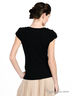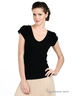 Детали: V-образный вырез горловины, короткий рукав, плечико декрировано сетчатыми цветами, подол украшен стразами