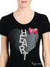 Детали: округлый вырез горловины, короткий рукав; полочка украшена аппликациями, стразами и атласным бантиком