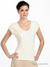 Детали: V-образный вырез горловины, короткий рукав, плечико декрировано сетчатыми цветами, подол украшен стразами