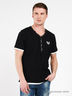 Футболка полуприлегающего силуэта с V-образным вырезом, с короткой застежкой на пуговицы. Манжеты и низ изделия из контрастной обтачки. На груди-маленький контрастный принт.