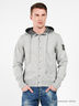 Стильный кардиган и плотного, мягкого хлопкового трикотажа. Модель дополнена капюшоном. Застежка на планку с пуговицами. Длинные рукава с манжетами. На рукаве неяркий печатный рисунок. Отличный вариант на каждый день.