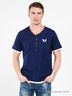 Великолепная мужская футболка из плотного, мягкого трикотажа. V-образный вырез горловины. Декоративная планка с пуговицами. Короткие рукава с манжетами. На полочке маленький печатные рисунок. Манжеты и низ изделия дополнены контрастными вставками. Отличный вариант на каждый день.