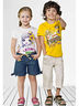 Футболка для девочки, изготовлена из хлопка светло-бежевого цвета. Модель украшена принтом с изображением девочки и надписью и декорирована бисером.