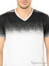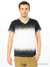 Детали: V-образный вырез горловины, короткий рукав, изделие градиентно окрашено: черный / белый цвета.
