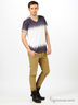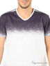 Детали: V-образный вырез горловины, короткий рукав, изделие выполнено в градиентной окраске - фиолетовый / белый.