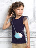 Футболка из эластичного хлопкового трикотажа. Рукава-крылышки выполнены из сетки. Принт в виде сумочки с цветком, цепочка которой выполнена из глиттера серебристого цвета.