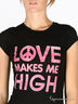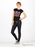 Футболка из тонкого и очень мягкого трикотажа. Классический крой. Короткий рукав. Округлый вырез горловины с декоративной прострочкой в тон изделия. Слегка приталенный силуэт. Изделие декорировано яркой надписью-аппликацией.