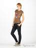 Футболка из тонкого и очень мягкого трикотажа. Классический крой. Короткий рукав. Округлый вырез горловины с декоративной прострочкой в тон изделия. Слегка приталенный силуэт. Изделие декорировано яркой надписью-аппликацией и блесками.