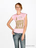 Футболка из тонкого и очень мягкого трикотажа. Классический крой. Короткий рукав. Округлый вырез горловины с декоративной прострочкой в тон изделия. Слегка приталенный силуэт. Изделие декорировано надписью-аппликацией.