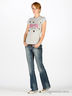 Футболка из тонкого и очень мягкого трикотажа. Классический крой. Короткий рукав. Округлый вырез горловины с декоративной прострочкой в тон изделия. Слегка приталенный силуэт. Изделие декорировано яркой надписью-аппликацией и блесками.