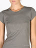 Футболка из тонкого и очень мягкого трикотажа. Классический крой. Короткий рукав. Округлый вырез горловины с декоративной прострочкой в тон изделия. Слегка приталенный силуэт. Изделие декорировано стразами.