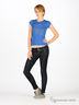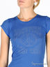 Футболка из тонкого и очень мягкого трикотажа. Классический крой. Короткий рукав. Округлый вырез горловины с декоративной прострочкой в тон изделия. Слегка приталенный силуэт. Изделие декорировано стразами.