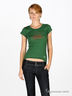 Футболка из тонкого и очень мягкого трикотажа. Классический крой. Короткий рукав. Округлый вырез горловины с декоративной прострочкой в тон изделия. Слегка приталенный силуэт. Изделие декорировано яркой надписью-аппликацией.