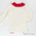 Футболка прямого кроя с длинным рукавом. V-образный вырез. Вырез горловины и полочка украшены рюшами.