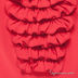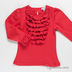 Футболка прямого кроя с длинным рукавом застегивается на одну пуговицу на спинке. Полочка и манжеты украшены оборками.