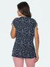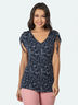 Эффектная футболка из струящегося трикотажа, запринтованного абстрактным принтом. Плечевые швы дополнены кулиской со сборкой.