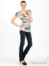 Детали: широкий круглый вырез; короткий цельнокроеный рукав; декорирована оригинальным принтом и пайетками