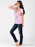 Детали: V-образный вырез горловины, короткий рукав, полочка украшена аппликациями