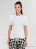 Футболка - незаменимая вещь в базовом гардеробе любой современной девушки. Модель приталенного силуэта с округлым вырезом горловины и короткими рукавами. Оригинальная отделка украшает изделие.