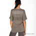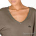 Элегантная футболка из коллекции Gaudi, коричневого цвета. Модель слегка облегает тело, что придает фигуре женственный силуэт. V-образный вырез, эффектно выделяет зону декольте. Изюминка футболки, это трендовые широкие рукава, выполненные длинной по локоть.