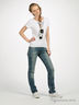 Трикотажная футболка с короткими рукавами и круглой горловиной. На полочке серебристая аппликация.