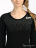 Трикотажная футболка с длинными рукавами. Круглая горловина, окантованная трикотажной резинкой. Спереди декоративный разрез на пуговицах. Край спинки посажен на резинку.
