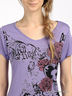 Трикотажная футболка из приятного на ощупь материала. Широкая горловина. Короткие рукава. На полочке набивной рисунок, украшенный стразами.