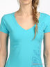 Женская футболка из плотного хлопка. V-образная горловина. Декорирована принтом на полочке.