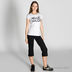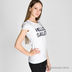 Стильная белая футболка поло украшена надписью «HELLO SAILOR» на груди. Низ футболки и рукава с двойной чёрной прострочкой. Отличный и практичный выбор на лето.