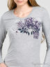 Женская трикотажная футболка с длинными рукавами. Круглая горловина. Спереди футболка украшена набивным рисунком.