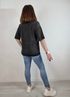 Женская футболка с оригинальным дизайном, украшена россыпью камней. Рост модели 175 см