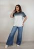 Женская футболка с оригинальным дизайном, украшена россыпью камней. Рост модели 175 см