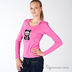 Майка из трикотажа, спереди принт из страз в виде мультяшного героя. Небольшая сборка по окату рукава.