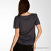 Стильная футболка прямого кроя и с круглым вырезом горловины. Горловина стягивается посредине шлевкой, образуя мягкую сборку.