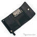 Стильная ключница из натуральной гладкой кожи. Внешняя сторона изделия дополнена металлической вставкой в виде логотипа бренда. Застежка на металлическую кнопку. Внутри: карман для мелочи на молнии и шесть карабинов для ключей.