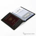 Аксессуар раскладывается пополам и может вместить в себя 72 визитки. Внутри есть прозрачные отделы для документов.