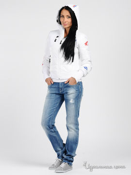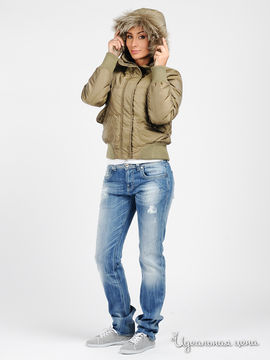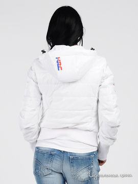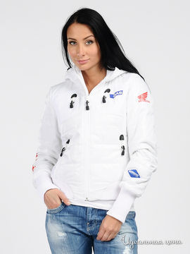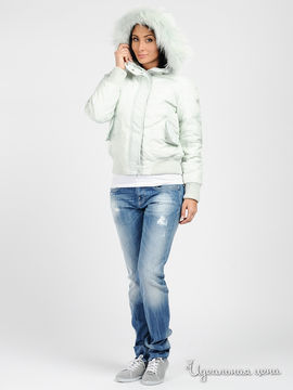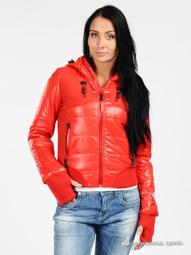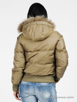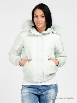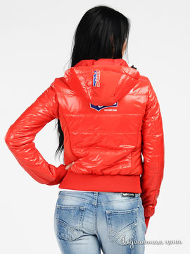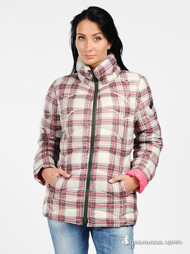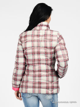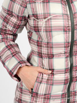 Пуховик GAS женский, цвет светло-серый / фуксия / принт клетка